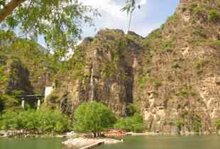早7:00朝外丰联广场, 7:30人大对面当代商城认”阳光之旅”导游旗集合,乘车前往十渡旅游风景区,车程约2小时后便宛如进入"世外桃源,人间仙境"。这里四季如画,山花烂漫,香溢山川,构成了"青山野渡,百里画廊"的绝妙风光。进入孤山寨风景区,走京郊第一铁索长桥,摇摇晃晃超好玩,看石中石,犬守天门,奇绝一线天等地质奇观。赠送十渡竹筏!流连于青山绿水之中,心旷神怡!午餐后可自费体会刺激的漂流活动,坐在皮筏上顺水而下,与亲爱的朋友一道感受春的浪漫。也可在拒马河乐园里自费游玩各种刺激的娱乐项目,蹦极、峡谷飞人等等。在十渡山水中留下你最美好的记忆!集合返京,结束愉快的旅程!