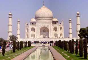 早餐后在酒店内用,参观世界著名的七大奇迹之一泰姬陵(周五不开放),伤心欲绝的沙迦罕王为纪念他的爱妻泰姬王妃,全部使用白色大理石和宝石镶嵌,花费22年时间建成的泰姬陵。至今依然保留着她昔日的神采,她在月色下的绰约姿容,在破晓时分的艳红美态和她在园中池塘的倒影,都同样教人心醉神往。接着参观著名的阿哥拉红城堡,靠在圣河——雅沐娜河西岸,有着四百多年的历史、高达20多米的城墙的雄伟建筑。是以前统一印度的蒙兀尔王朝皇帝的宫殿,全部用红色沙石筑成,上面布满了精美的艺术雕刻至今清晰可见。随后前往印度著名的大理石和克什米尔羊毛加工厂,观看当年为沙迦罕王建造泰姬陵的印度工匠的后代们,运用流传了数百年的精湛手艺制成的工艺品。晚上送往酒店休息及用晚餐。住宿阿格拉。